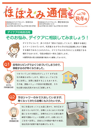 年4回、利用者さま・ご家族やケアマネジャーの方々向けに発行している「ほほえみ通信」では、ほほえみ・第2ほほえみでの取り組みやご自宅でも活用できる運動など、知って得する情報をご紹介しています。