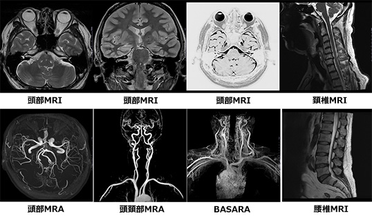 一般撮影装置(FPD)2台、CT 2台(80列、320列)、MRI 2台(1.5T、3.0T)、X線透視装置1台、血管撮影装置1台、ポータブルX線撮影装置2台、骨塩定量装置1台、 外科用イメージ2台